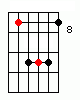 numerals alongside the patterns; they indicate fret numbers).