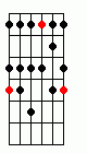 the twelfth fret, then back down again.